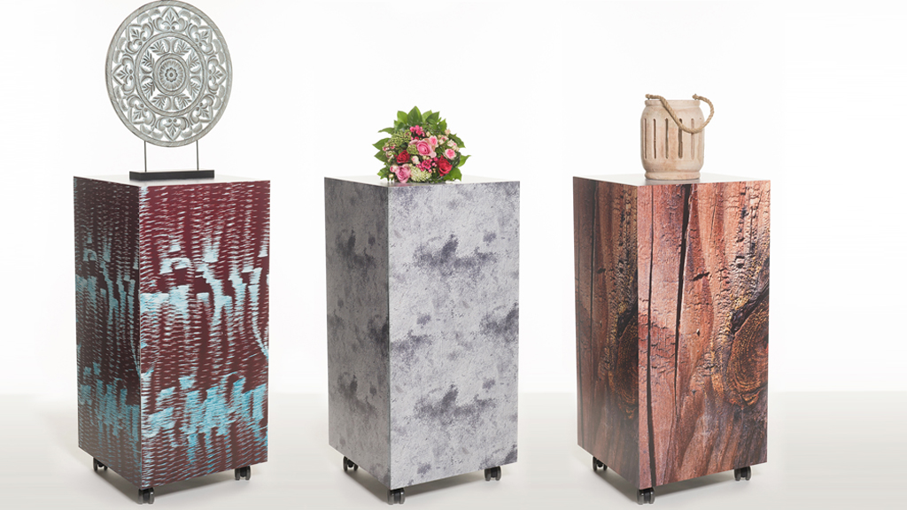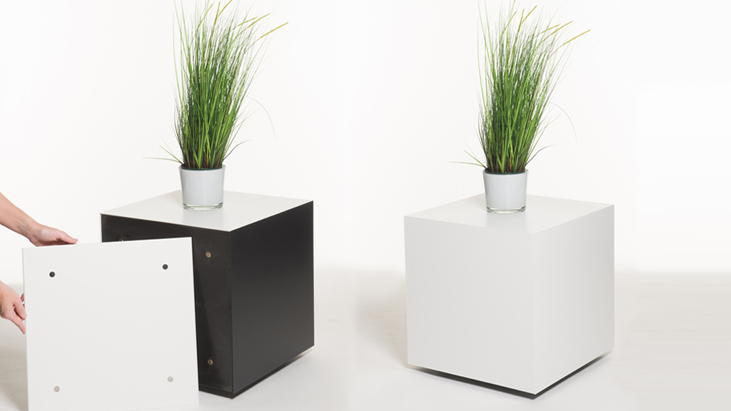 Das muss nicht sein, wenn Sie sich für einen Cubus Cultus Wandelwürfel entscheiden. So kann Ihr Stehtisch vom Messeeinsatz beispielsweise im Handumdrehen in einen Sitzwürfel, Bistrotisch oder in ein Pflanzenpodest verwandelt werden. Das Messemotiv der Verkleidung passt dabei optisch nicht so ganz in das Erscheinungsbild Ihres Empfangsbereichs? Kein Problem, denn die Würfelumhüllungen sind leicht auszutauschen und einzeln nachzubestellen.